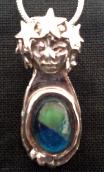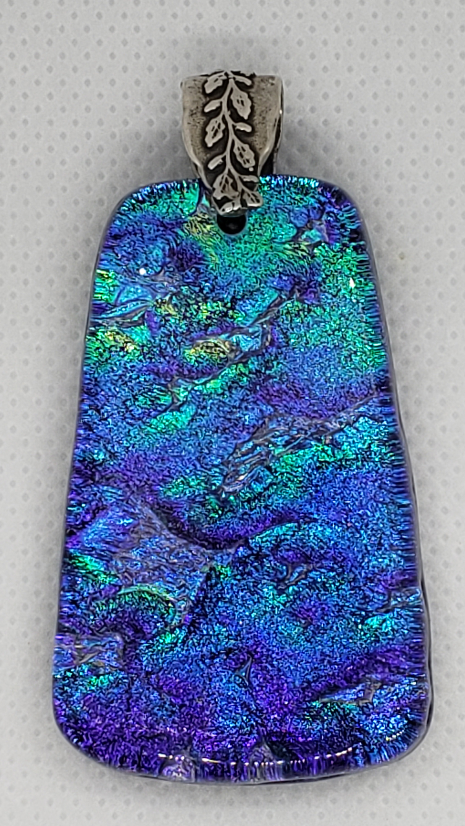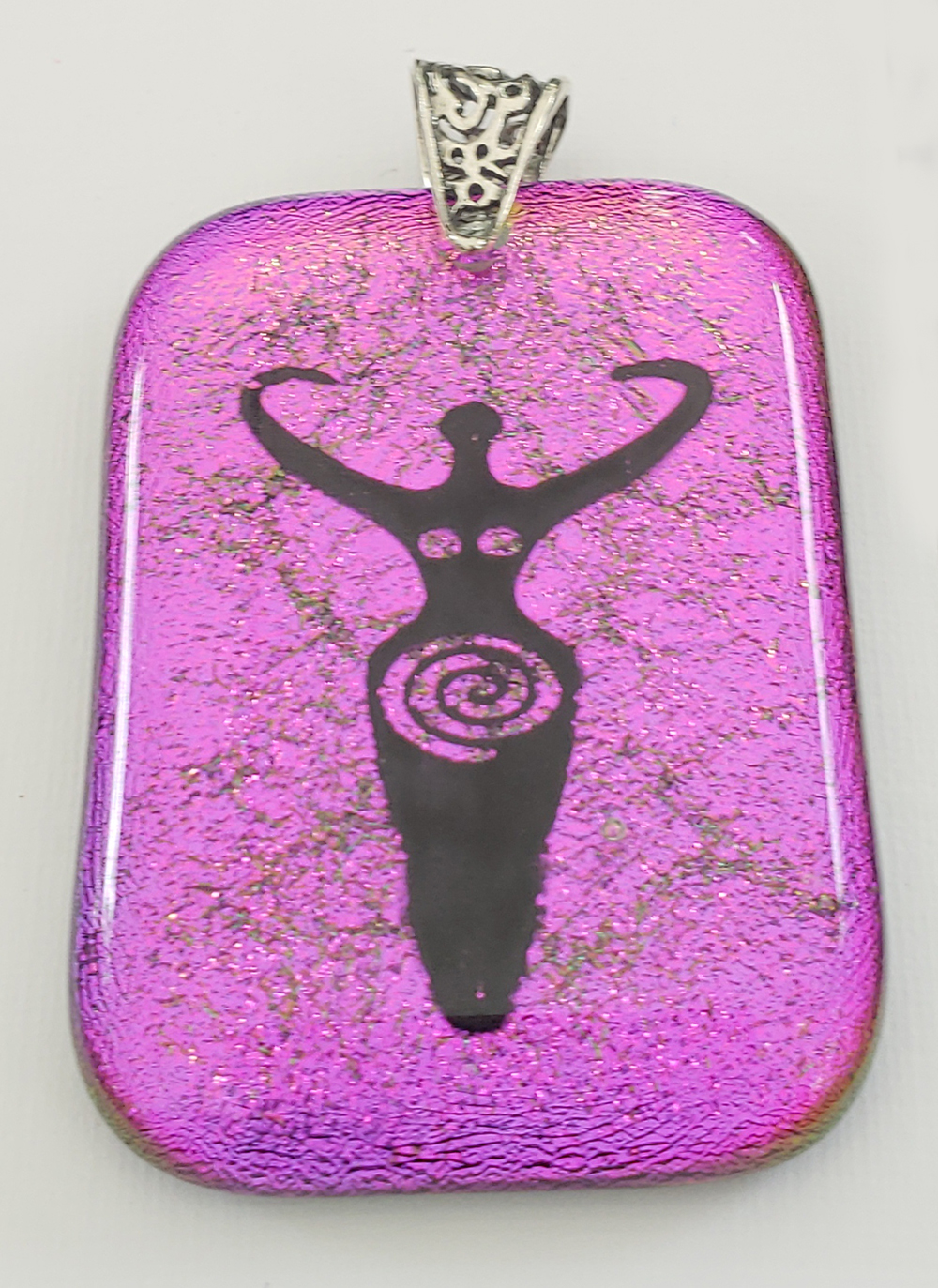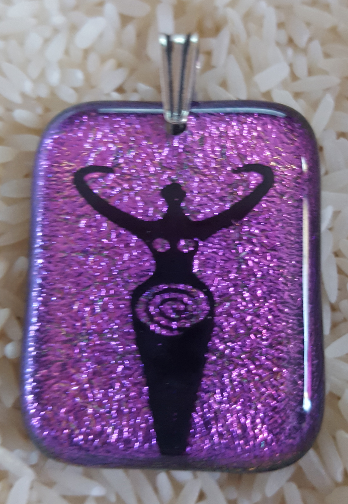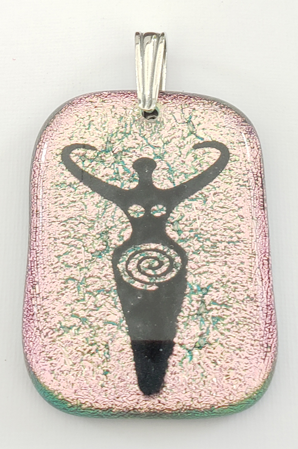 | glass goddess .999 fine silver and dichroic and art glass $60 |