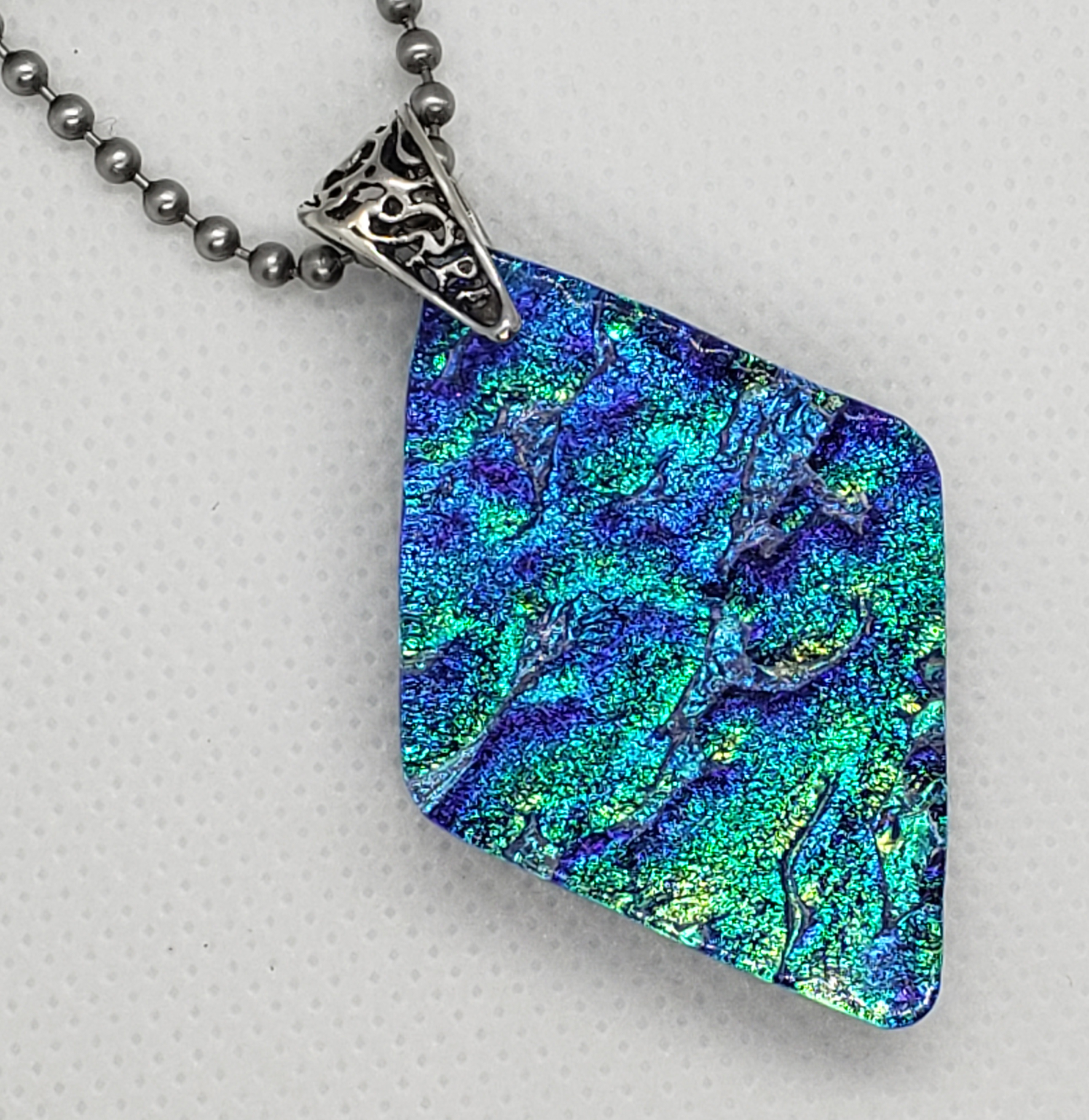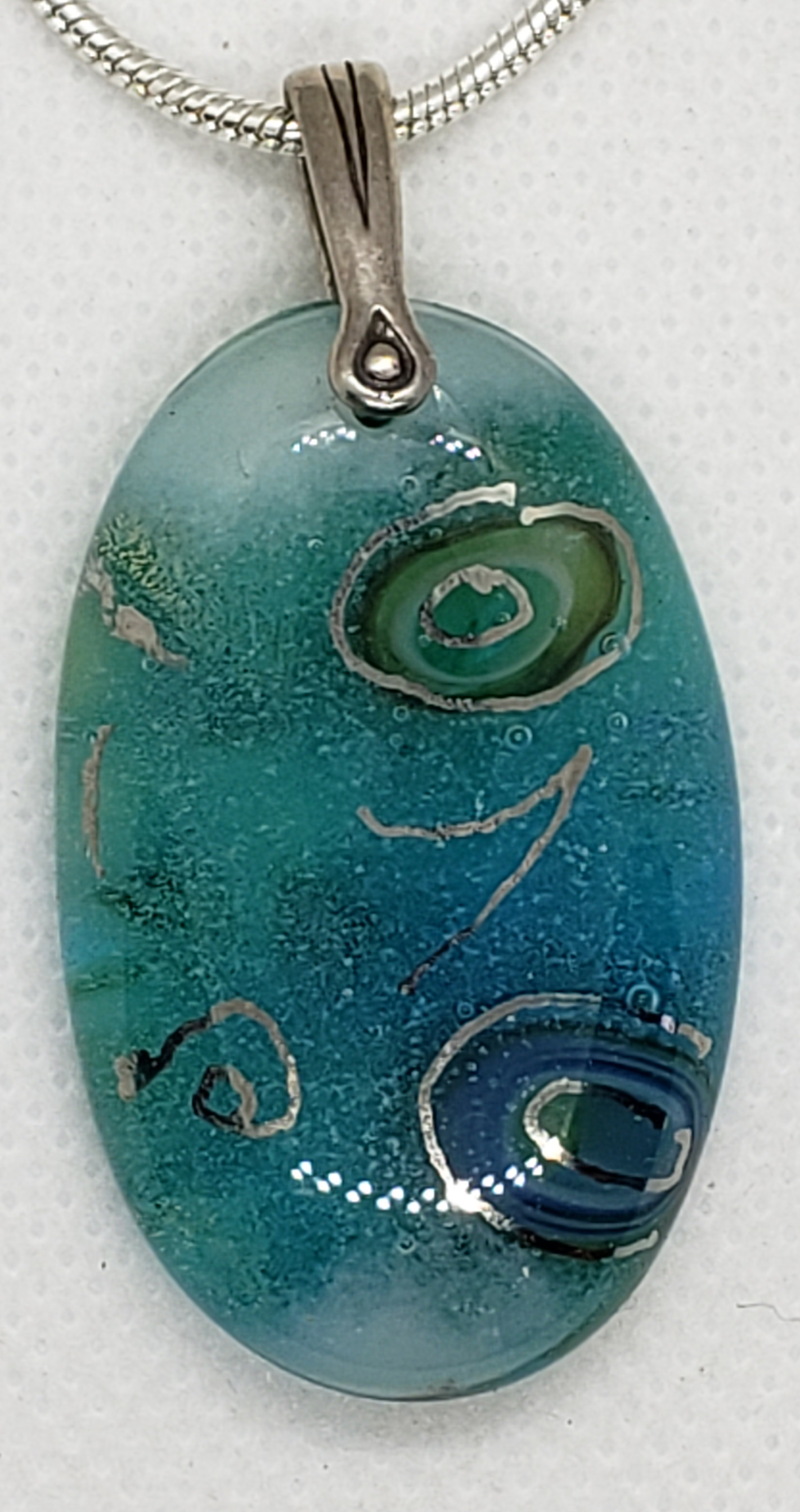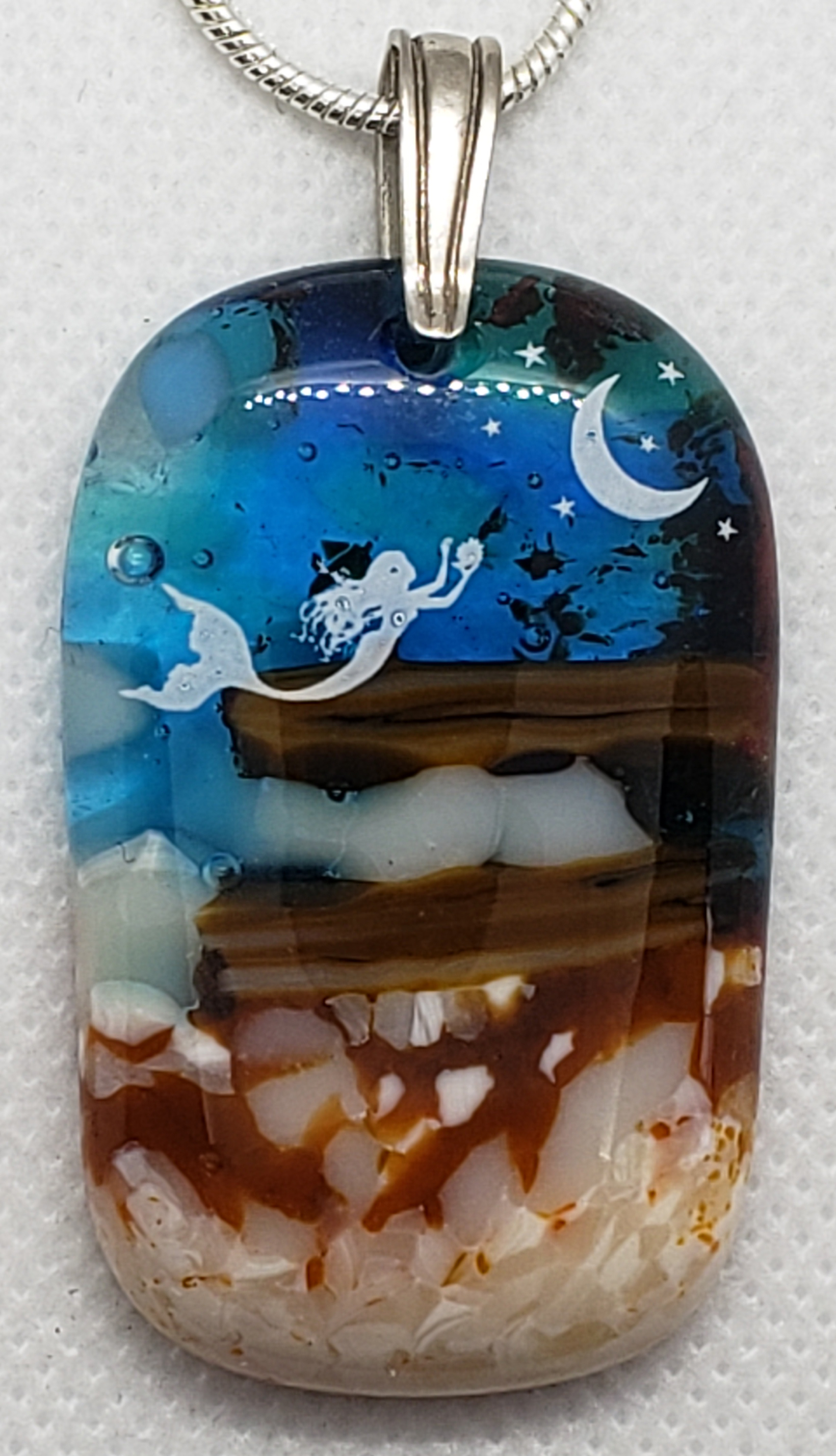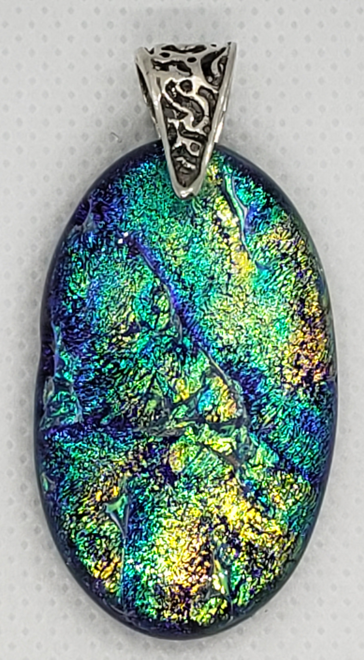 | glass goddess .999 fine silver and dichroic and art glass $60 |