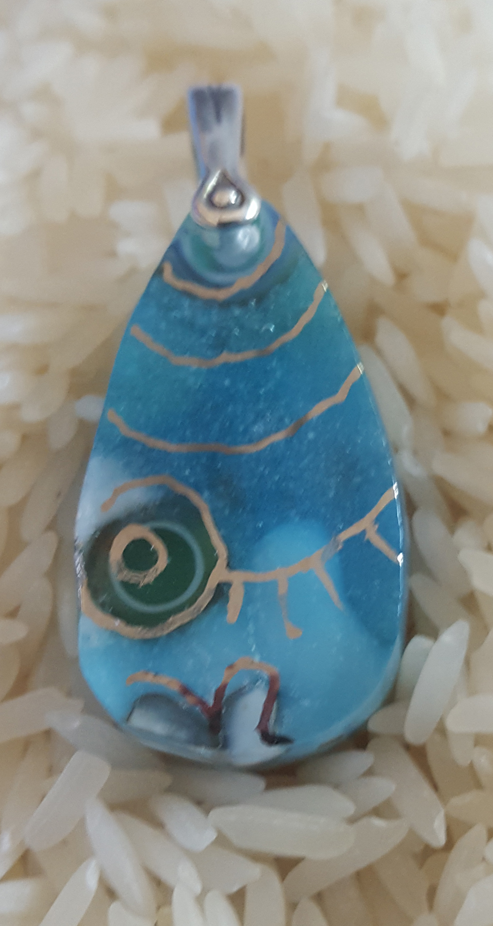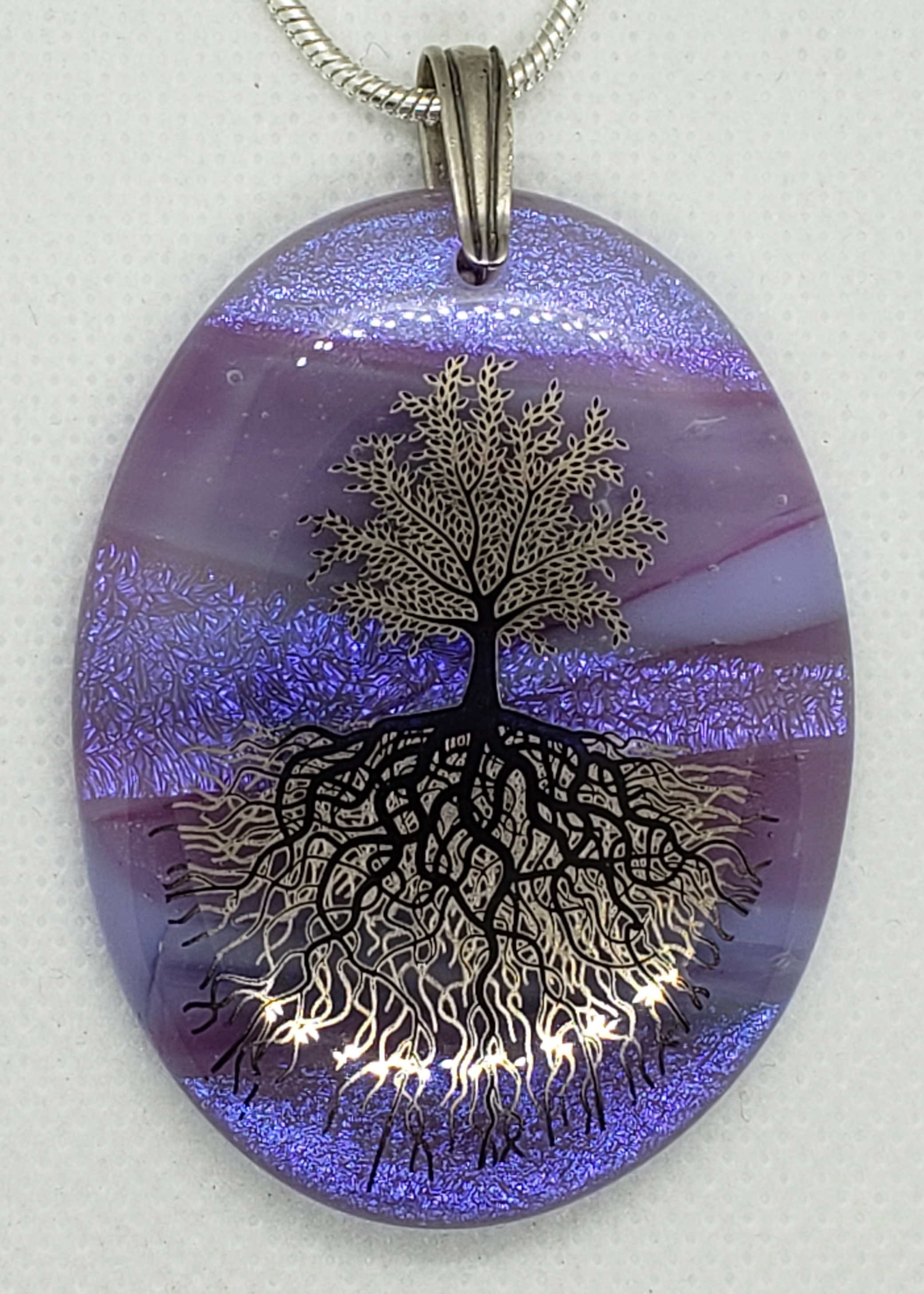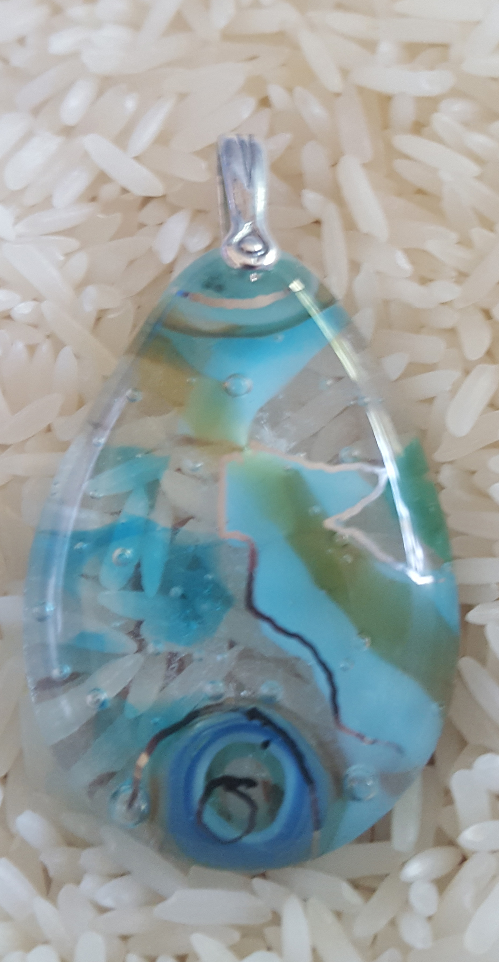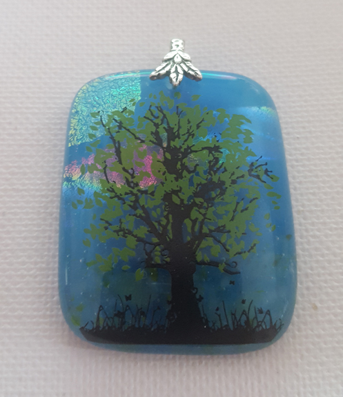 | glass goddess .999 fine silver and dichroic and art glass $60 |