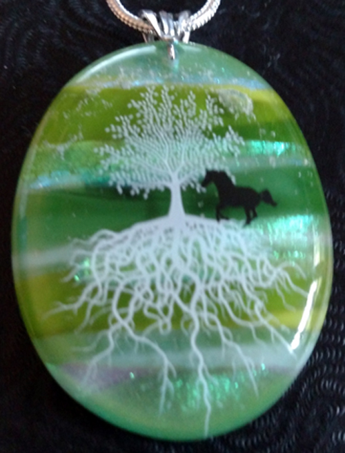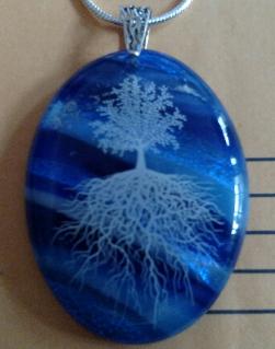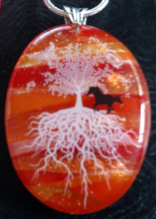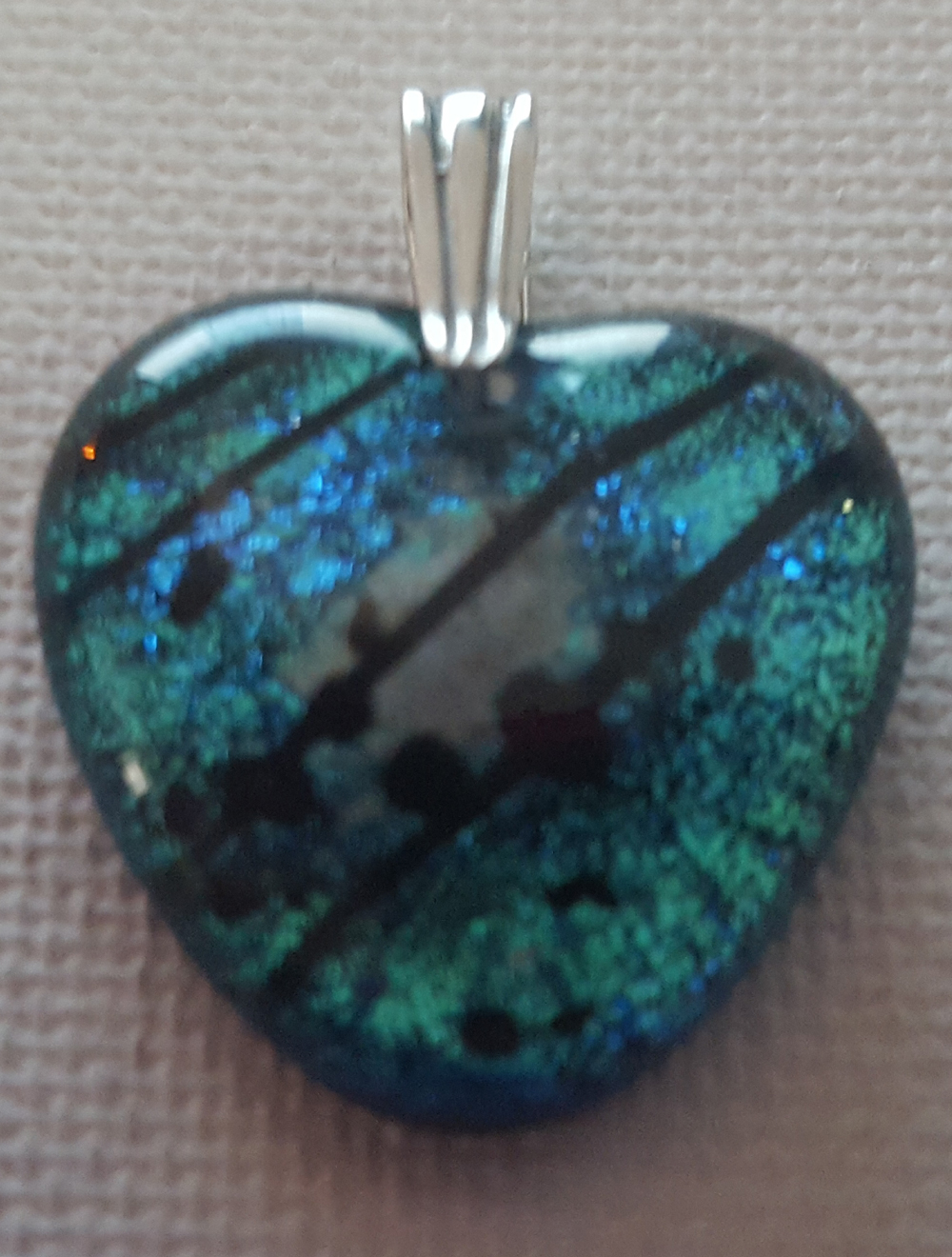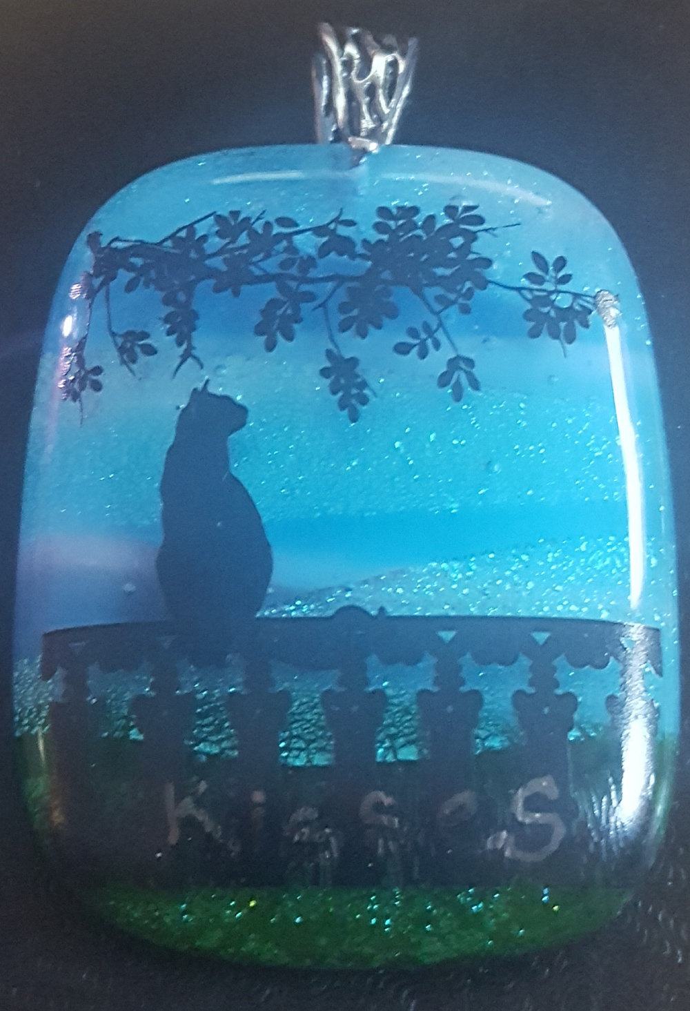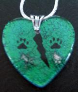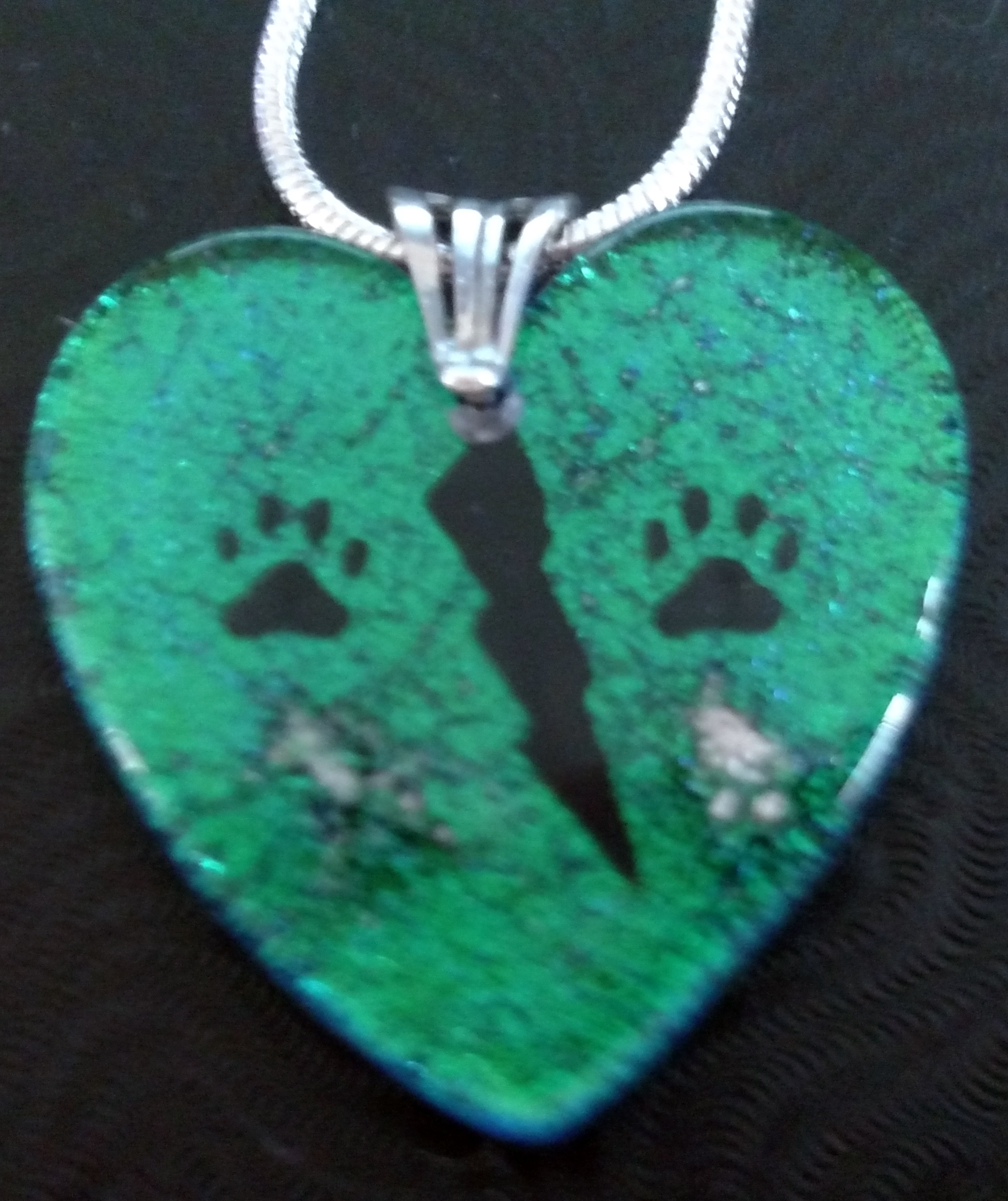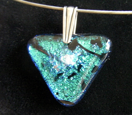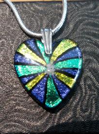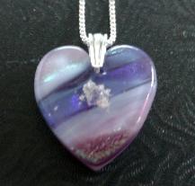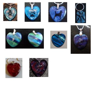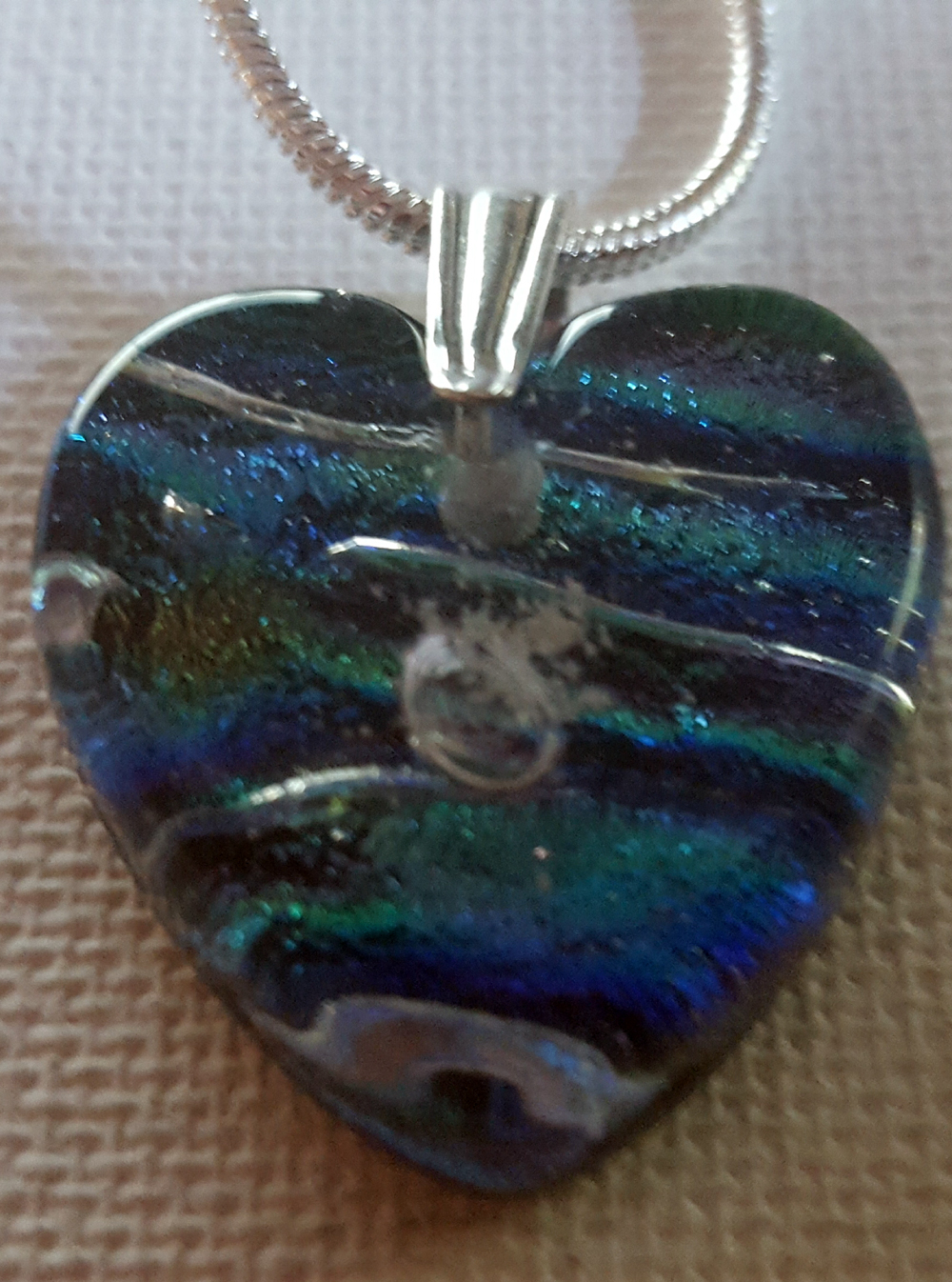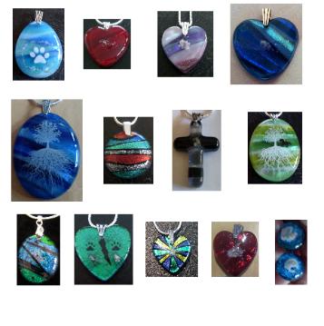 | These beautiful memory pendants allow you to keep a reminder of your beloved pet or loved one close to you whenever you like. A small portion of their ashes is encased in glass and incorporated into a custom pendant. You choose the color, type of glass, size, shape, and whether the ashes are visible or not. I treat the ashes very respectfully throughout the process, and always return any that I do not use. $40-$60 depending on complexity Please send email if you wish to commission a memorial piece. We will work together to design exactly what you have in mind. |